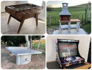 Notre gîte de grande capacité est authentique, confortable et haut de gamme, avec une piscine chauffée, un jacuzzi 6 personnes, un baby-foot, un flipper, une borne d’arcade, une table de ping-pong, un terrain de pétanque et un grand jardin arboré de 2000 m².